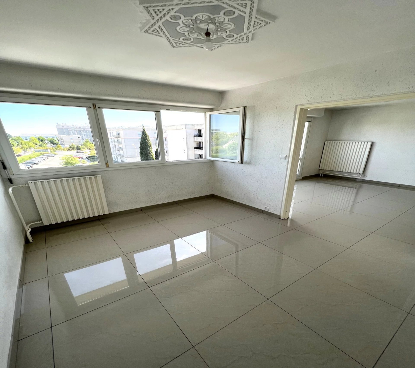 IDEAL INVESTISSEUR ! 3ème et dernier étage - appartement spacieux de type 4 entièrement rénové comprenant une entrée avec placard, un séjour, un salon séparé transformable en TROISIEME CHAMBRE , une cuisine aménagée et équipée, DEUX CHAMBRES, salle d'eau. Place de stationnement privatif et cave individuelle. Résidence à proximité des transports (tramway et bus) et commodités ! LIBRE DE TOUTE OCCUPATION. Le bien est situé dans une copropriété de 300 lots, les charges courantes mensuelles de copropriété sont de 180€ (Chauffage, eau froide, entretien des parties communes et espaces verts). Statut du syndicat : Pas de procédure en cours
