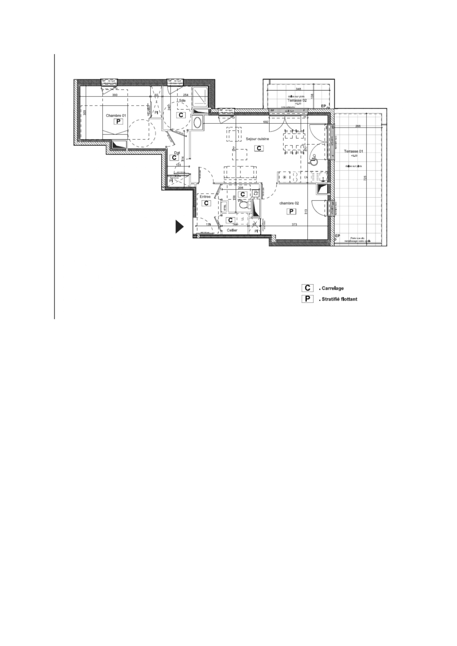 Il se compose d’un séjour spacieux orienté sud-est, baigné de lumière, de deux chambres confortables et d’une salle d’eau moderne. Vous profiterez à la fois d’un balcon et d’une terrasse, idéals pour aménager de véritables espaces extérieurs et savourer les beaux jours.